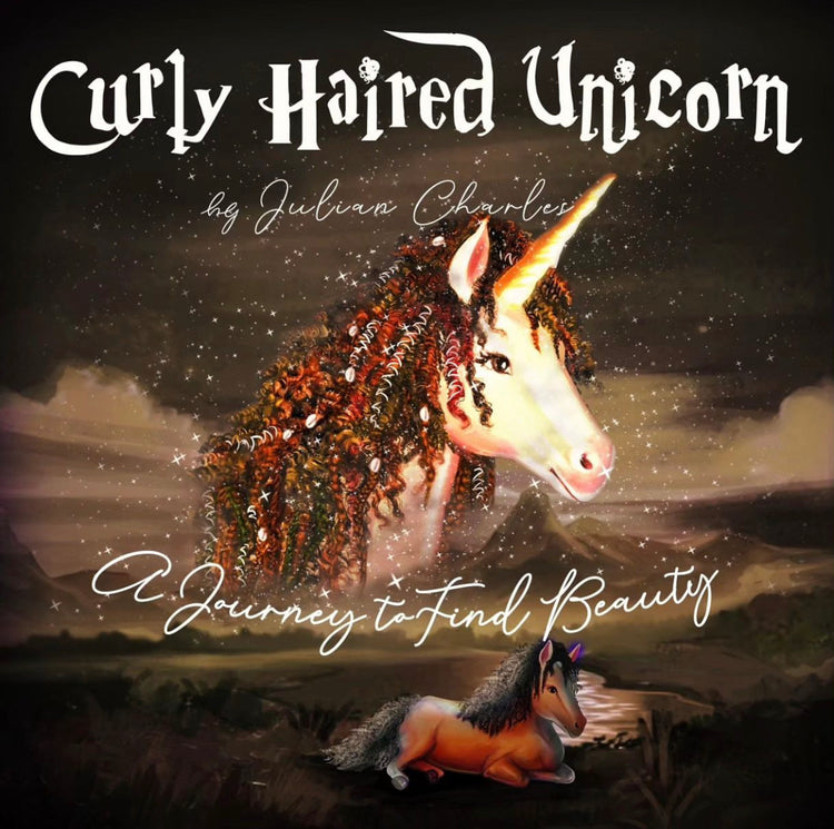 The Curly Haired Unicorn book tells the inspiring tale of Binah, a young unicorn who stands out in her herd for her unique, curly mane. While the other young horses tease her for being different, a moment of sadness sends Binah on a transformative journey. Along the way, she discovers what true beauty means and learns to see herself through a more compassionate and loving lens.